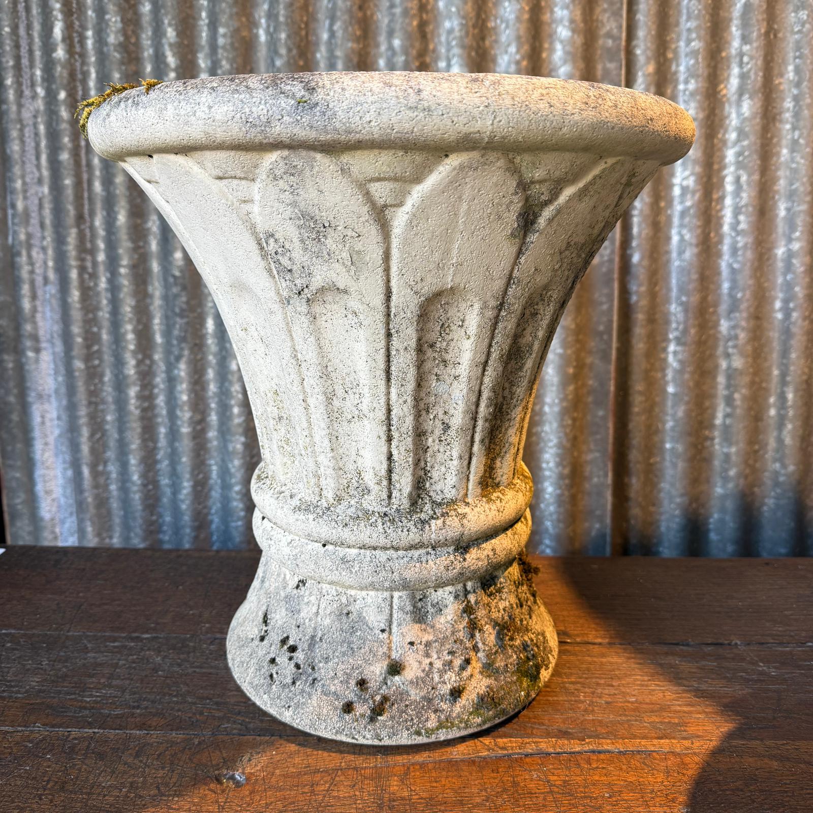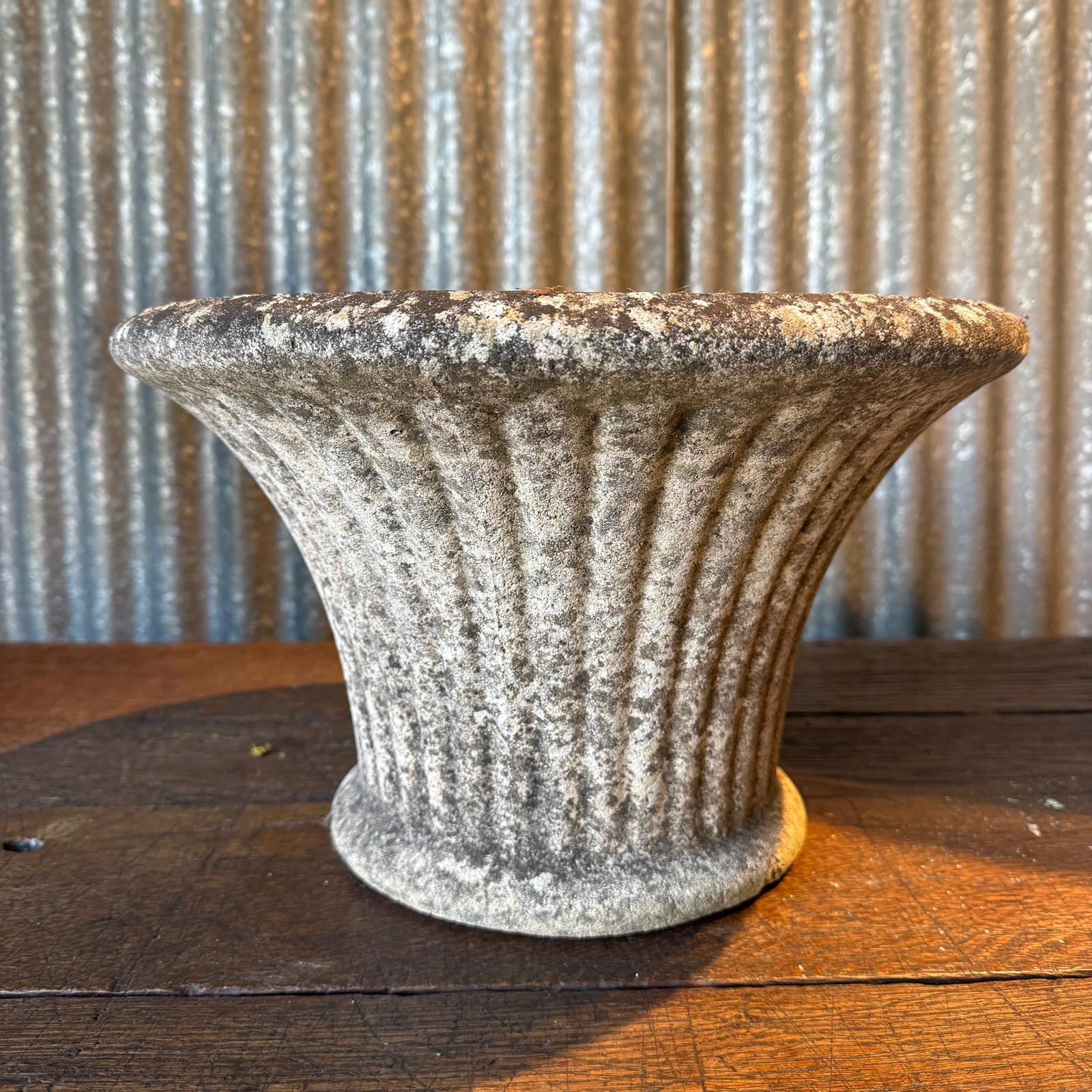 Grande jardinières en béton de formes variées.