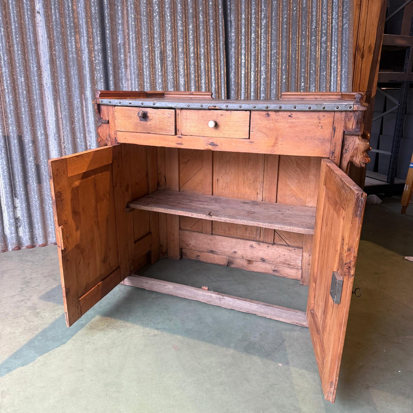 Comptoir surmonté d’un plateau en zinc.