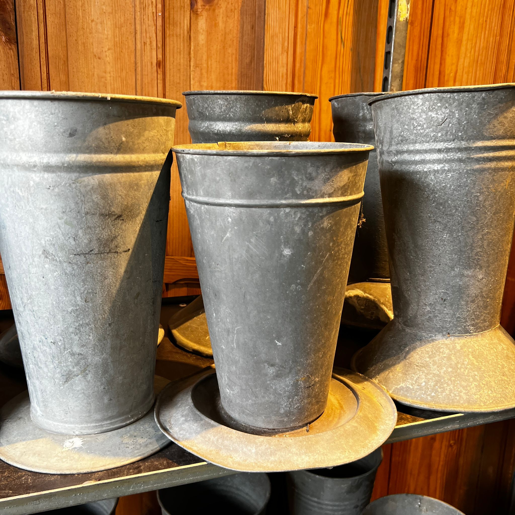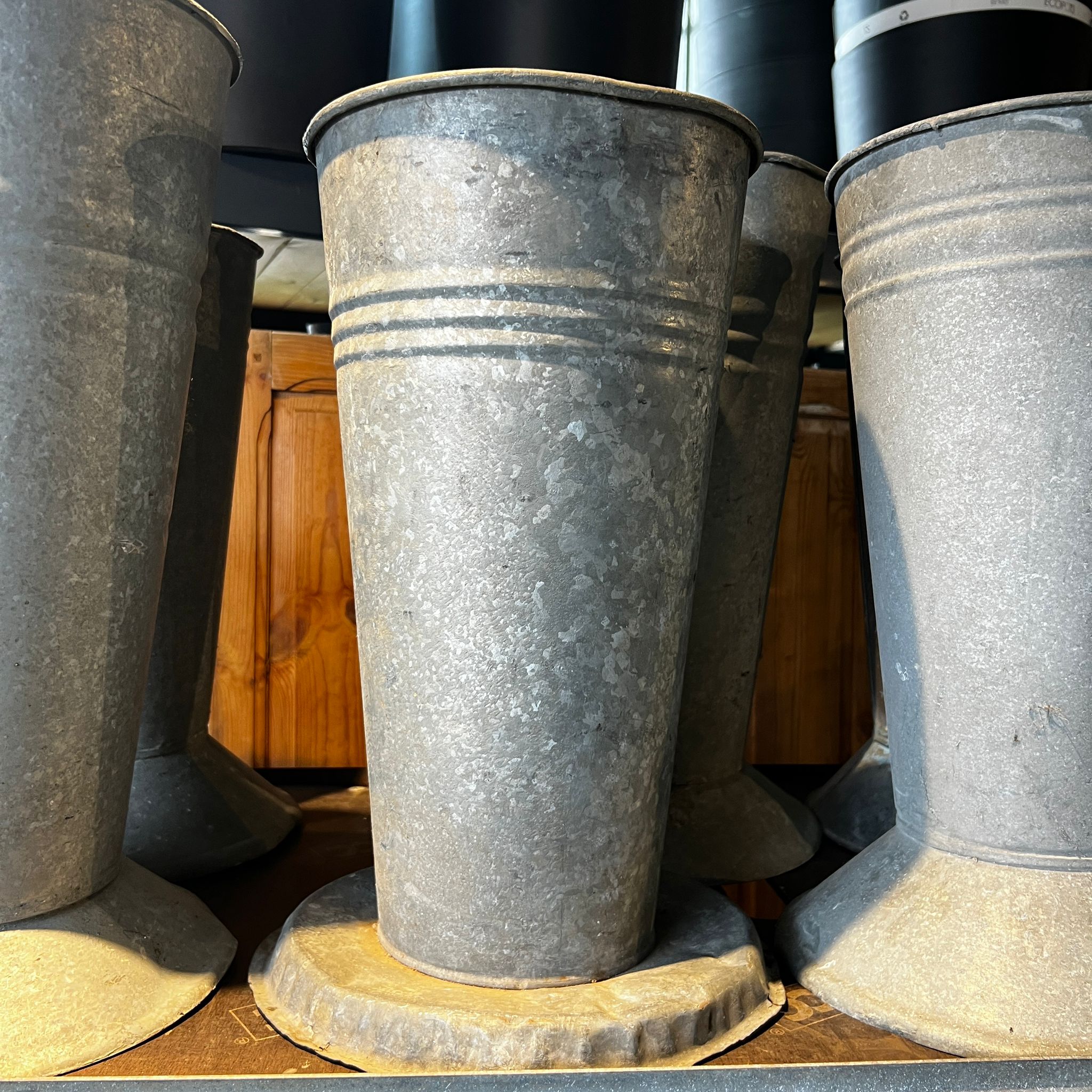 Seaux de fleuriste en zinc.